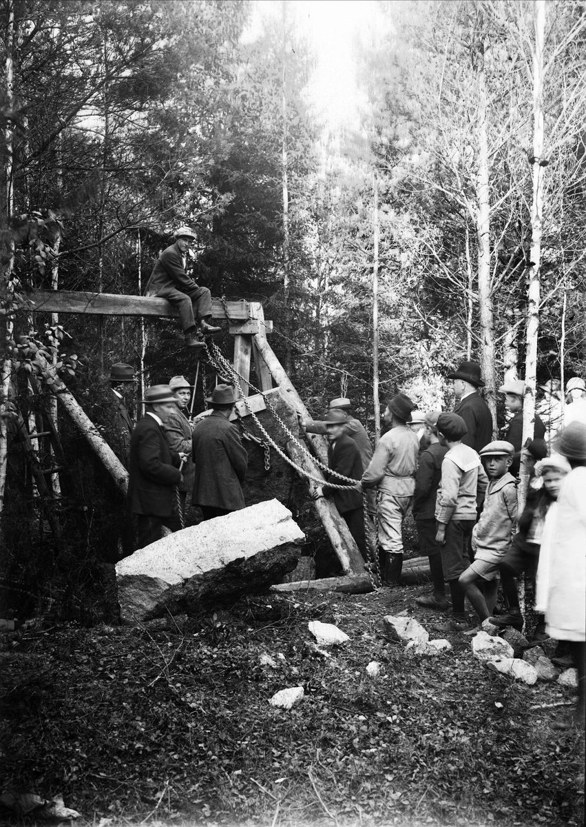 Folksamling vid resningen av runstenen vid Buska, Bengtsbo, Altuna socken, Uppland 1924 – Alinder, John; Alinder, J, Okänd"@sv; 1924-01-01 URI