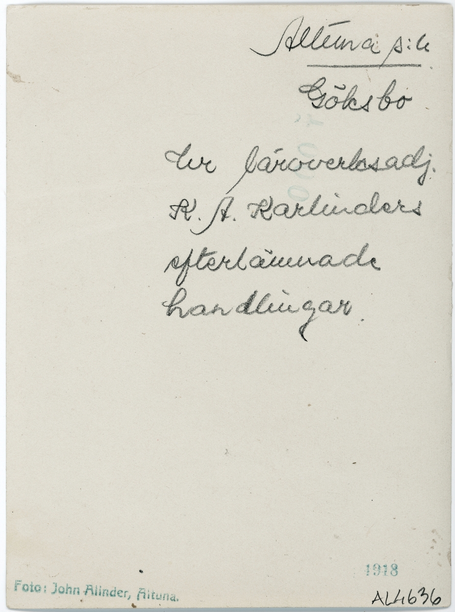 "Runstenen vid Göksbo i Altuna", Uppland 1918 – Alinder, John; Lundberg, Bengt A"@sv; 1918-08-29 URI