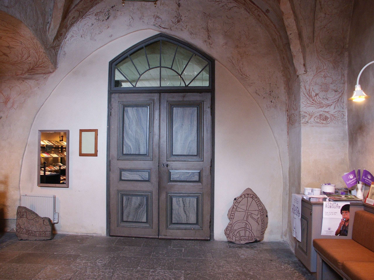 Dubbeldörr och två runstensfragment i vapenhuset, Vaksala kyrka, Uppsala 2006 – Dellbeck, Johan; Okänd"@sv; 2006-03-01 URI
