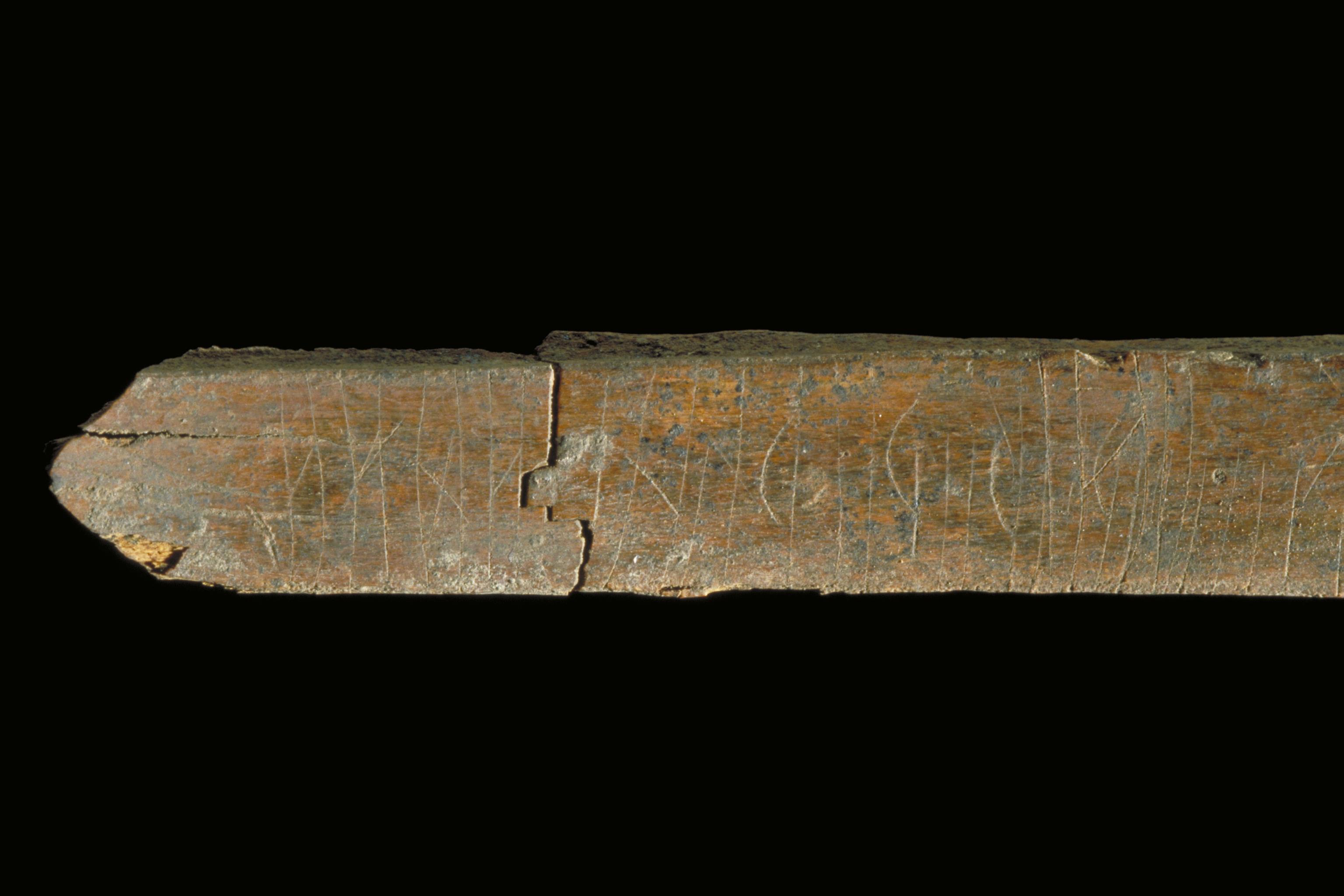 Fyndnr 6936. Lönnrunor i form av binderunor: r^ta^aþ^þ.